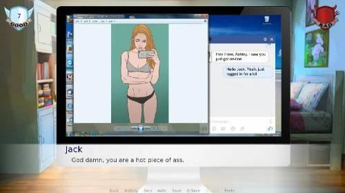 You play as Ashley and make choices that will affect her story in a meaningful way. Are you a good girl or a bad one? Will you stay in the right path or deviate and fall prey to the temptations you'll find in your way? Whatever you choose, it will lead to interesting, exciting and vastly different outcomes. This game aims to present you a complex, branching and coherent story, with deep characters and a lot of freedom, with completely hand crafted, hand drawn assets and a very unique art style, different from the usal 3D models. And a lot of kinky scenes and situations! If you like coherent, exciting, morally questionable stories, and you want to be the protagonist of one, please play my game. Become a Good Girl Gone Bad.