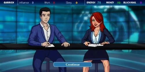 You will play as Garrick Reynolds, a news co-anchor. You and your female co-host, Cassandra Hamilton, are both alphas that clawed your ways to where you are now. The new problem is that the station is getting bought by a big news corporation and there will only be one anchor when the sale goes down. Both you and your colleague will try to sabotage each other to get that coveted spot. Maybe her college aged daughter would be a good place to start.