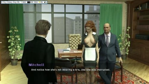 You are temporarily in charge of the regional branch of an important Electronics company. You have 60 days to make it great again. Be nice or not. it's up to you. Changelog: –Fixed a bug in the bathroom when you leave Meredith alone before the end of the current event. -Added a "Home rules" panel at home to change the initial choice to never enter Leah's room. -Added different quest log entries for existing quests that didn't have any -Added Alexy content . -Fixed an annoying bug that made an error pop up all the time in a new game until you knew the date of the conference. -Fixed a bug that made the bathroom spycam show the girls all day long. -Removed test notifications while talking to Miko. -Typos -New Meredith content at home (check bathroom) -New Cecilia/Miko content (Talk about good old days on evil path until you can go for a walk. Miko will pop up during the walk if you progressed her storyline. -New variation to Audrey content at home at night after the date. -New mini event with Aisha at night.