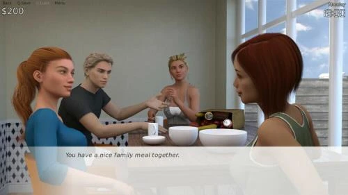 In The Davis Family, you play as Josh. Josh is either a college-age son who is returning home (after years abroad) to live with his mom and sisters, or a foreign exchange student who is living with a host family. You get to decide! Once you settle in to the house, you can get to know Andrea, a working mum who doesn't have time to date but seems suspiciously relaxed all the time; Julia, the younger sister who is still coming into her own; and Lauren, a once-shy and reserved schoolgirl rebelling against authority with her boyfriend.